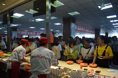 一年一度的开学大餐“迎心面”也再次如期登场,一碗碗“迎新面”,一碟碟水果和配菜,让新生尝到了家的味道,找到了家的感觉,为他们在工大的生活留下了美好的第一印象。