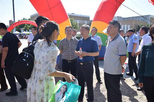 上午9:00,校长郭连军、副校长何又春来到青春广场新生报到处,看望前来报到的新生及其亲友们,慰问参与迎新工作的师生员工。在集中报到处、绿色通道、学生社团联合会、校团委新媒体中心、各学院等接待处,校领导详细询问了各单位的迎新工作亮点,并和部分新生亲切交流、合影留念。