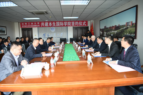 10月18日上午,学校在校部429会议室举行与北京本生文化交流有限公司共建本生国际学院签约仪式。本生国际经贸促进会名誉会长耿志远、北京本生文化交流有限公司董事长施劲华等一行7人及我校全体校领导出席会议,相关职能部门负责人参加会议。会议由校长郭连军主持。