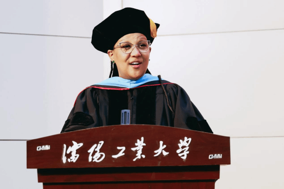 朱莉·多克里代表美国班尼迪克大学向全体毕业生表达了衷心的祝贺,向一直以来在背后默默付出、给予支持的老师和家长表示由衷的感谢。她表示,作为国际毕业生,同学们是创新的使者,是文化之间的桥梁,是进步的催化剂。通过学习,你们掌握了知识和技能,具备了应对各种的挑战的能力和信心,为未来取得更大的成功奠定了坚实的基础。她希望两校继续并肩前行,在项目已取得丰硕成果的基础上再接再厉,为项目发展共创更美好的未来。