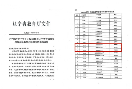 近日,辽宁省教育厅发布了《关于公布2020年辽宁省普通高等学校本科教学名师遴选结果的通知》,我校罗丹程、何立国、牛连强三位教师喜获“辽宁省普通高等学校本科教学名师”称号。辽宁省教育厅另发布了《关于认定首批国家级一流本科课程第一负责人为普通高等学校本科教学名师的通知》,我校郭连军、尚菲菲、吴伟、于海雁、于学斌五位教师作为首批国家级一流本科课程第一负责人被认定为“辽宁省普通高等学校本科教学名师”。至此,我校2020年共有八位教师获得“辽宁省普通高等学校本科教学名师”称号。