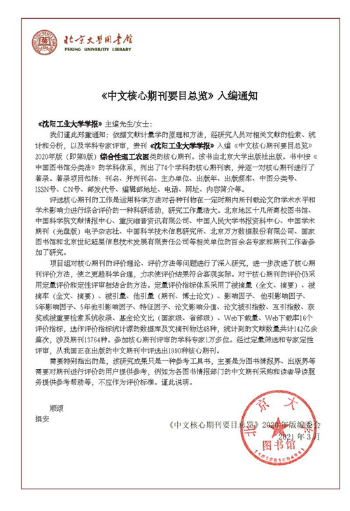《国产高清在线精品一区二区三区学报》入选《中文核心期刊要目总览》(2020年版)-国产高清在线精品一区二区三区官方网站