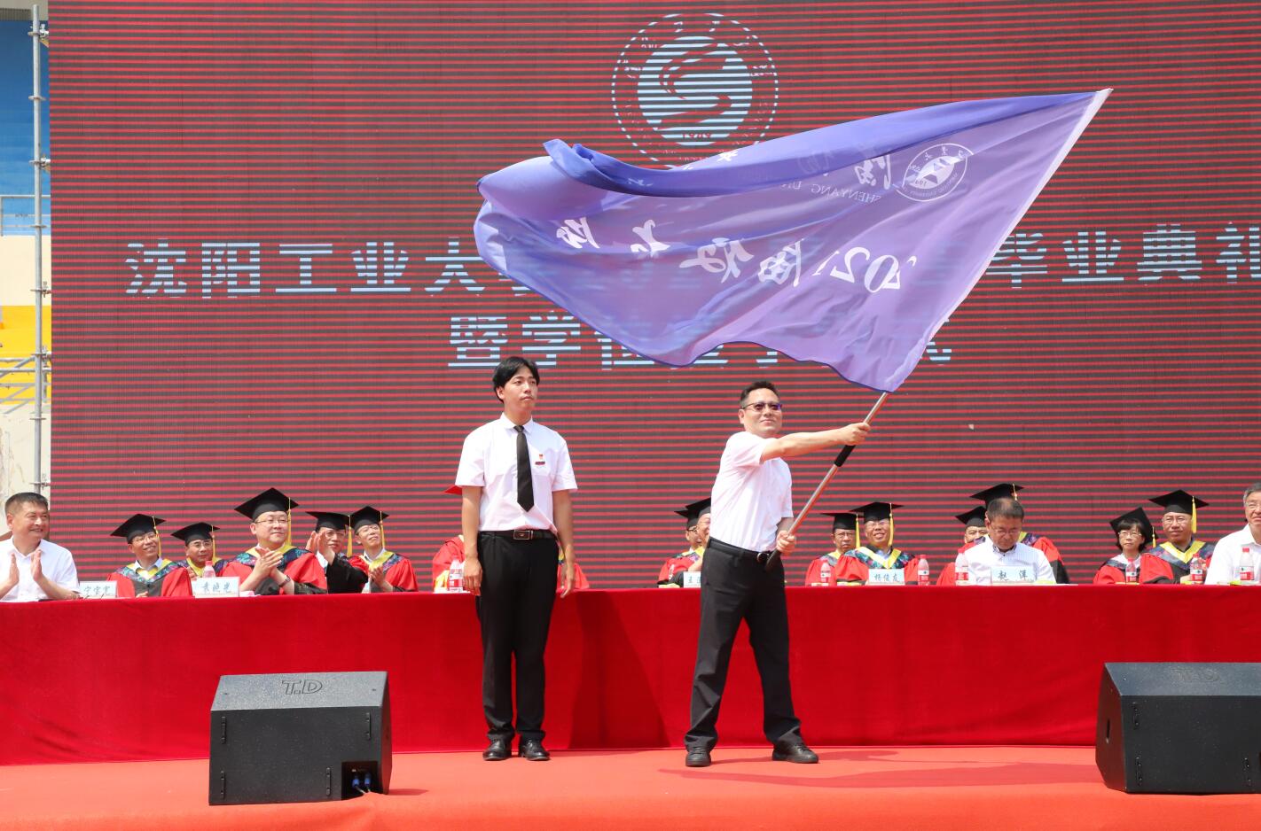 6月24日上午,国产高清在线精品一区二区三区2021届本科生、研究生毕业典礼暨学位授予仪式在中央校区体育场举行。全体校领导、校学位委员会委员、毕业生代表、各学院党委(党总支)书记、副书记、党委学生工作部相关负责人、毕业班级辅导员和教师代表,共同为3105名本科生、1197名研究生送别。典礼由副校长何又春主持。