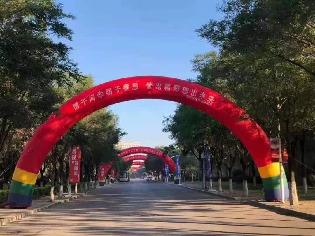问渠堤岸,慧月桥头,翔源湖畔,筑梦石边……“你好,新同学”的醒目标语随处可见,带着十四个学院祝福语的艳红拱门在主环路上一字排开,组成一条靓丽的拱门路,别致、醒目,与校园的青绿相得益彰。