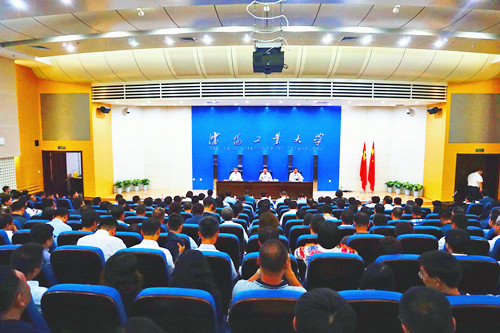 9月11日下午,学校党委在科学会堂召开“不忘初心、牢记使命”主题教育启动大会。省委第十一巡回指导组全体成员、全体校领导出席会议;中层领导干部、党支部书记、教师党员和学生党员代表参加会议。会议由党委副书记、校长郭连军主持。