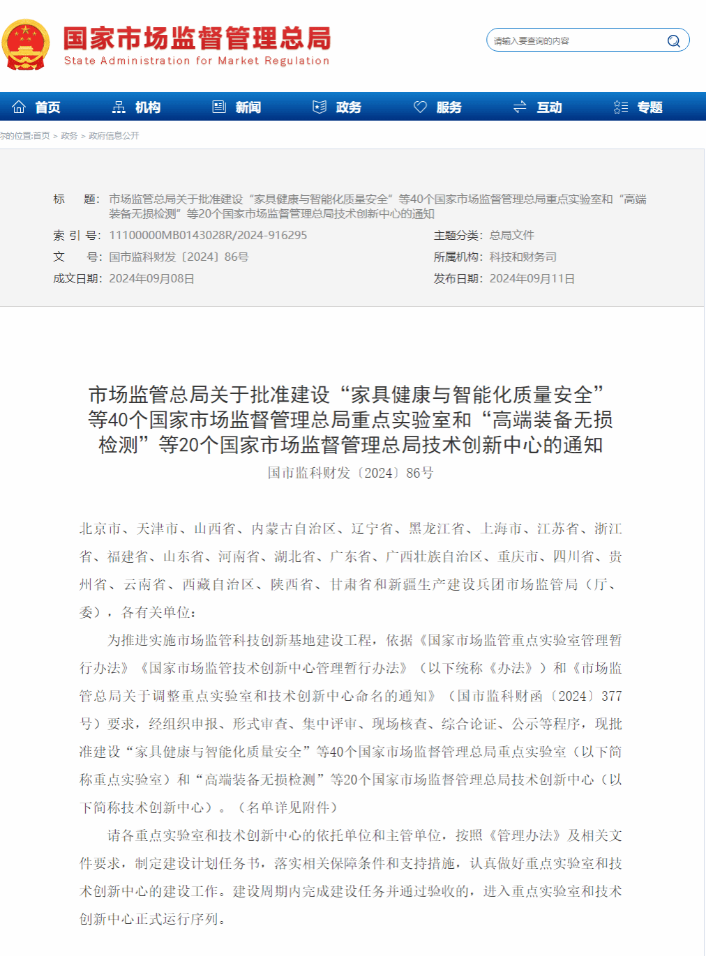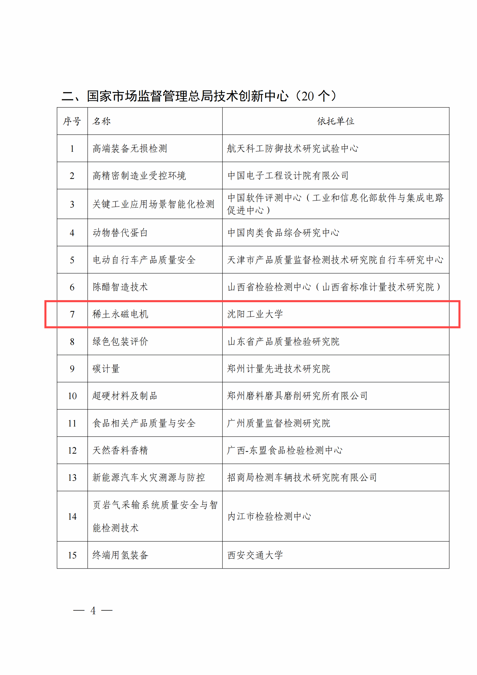 9月11日,国家市场监督管理总局发布了《市场监管总局关于批准建设的40个重点实验室和20个技术创新中心的通知》(国市监科财发〔2024〕86号),我校获批国家市场监督管理局技术创新中心(稀土永磁电机)。