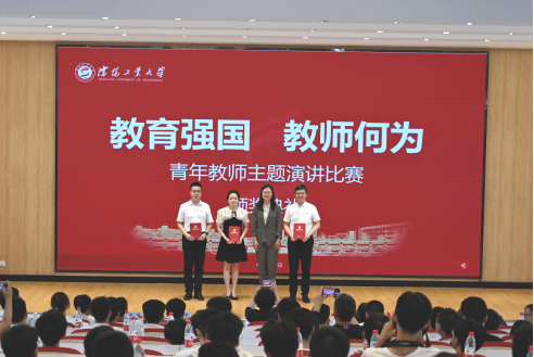 为提升青年教师自觉运用习近平新时代中国特色社会主义思想铸魂育人的意识和能力,强化教师为党育人、为国育才的使命担当,9月5日,学校在教学楼E-301举办“教育强国、教师何为”青年教师主题演讲比赛,党委副书记赵璟出席活动并致辞。有关职能部门负责人和各学院师生代表参加活动。