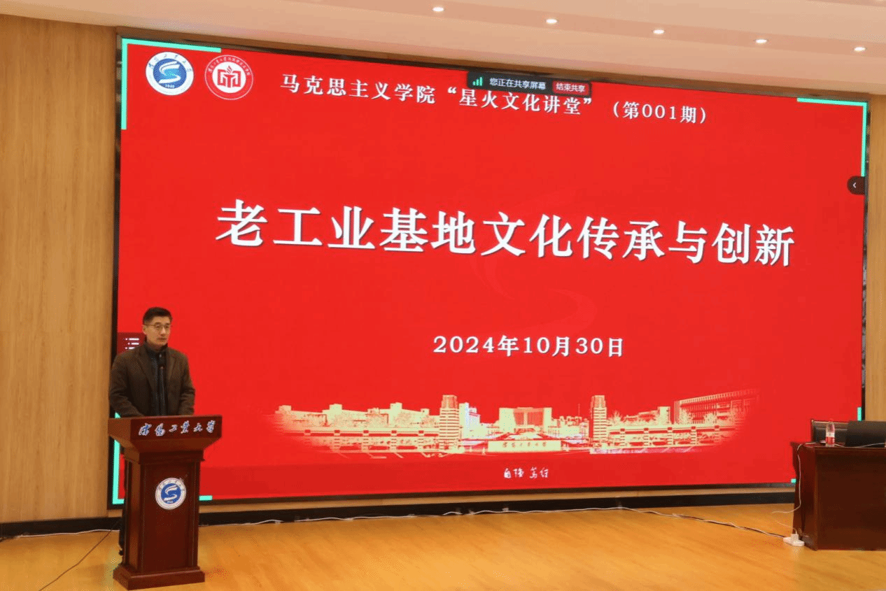 为深入学习贯彻习近平文化思想,以实际行动落实党的二十届三中全会精神,大力弘扬教育家精神,切实发挥马克思主义学院在思想引领的重要作用,10月30日下午,学院举办“星火文化讲堂”启动仪式。并邀请陈彦超教授作为首期开讲嘉宾,作“老工业基地文化传承与创新”的主题报告。马克思主义学院党总支书记曲弋教授出席并讲话,马克思主义学院全体教师、各学院组织员、部分教师和学生骨干代表200余人参加报告会。