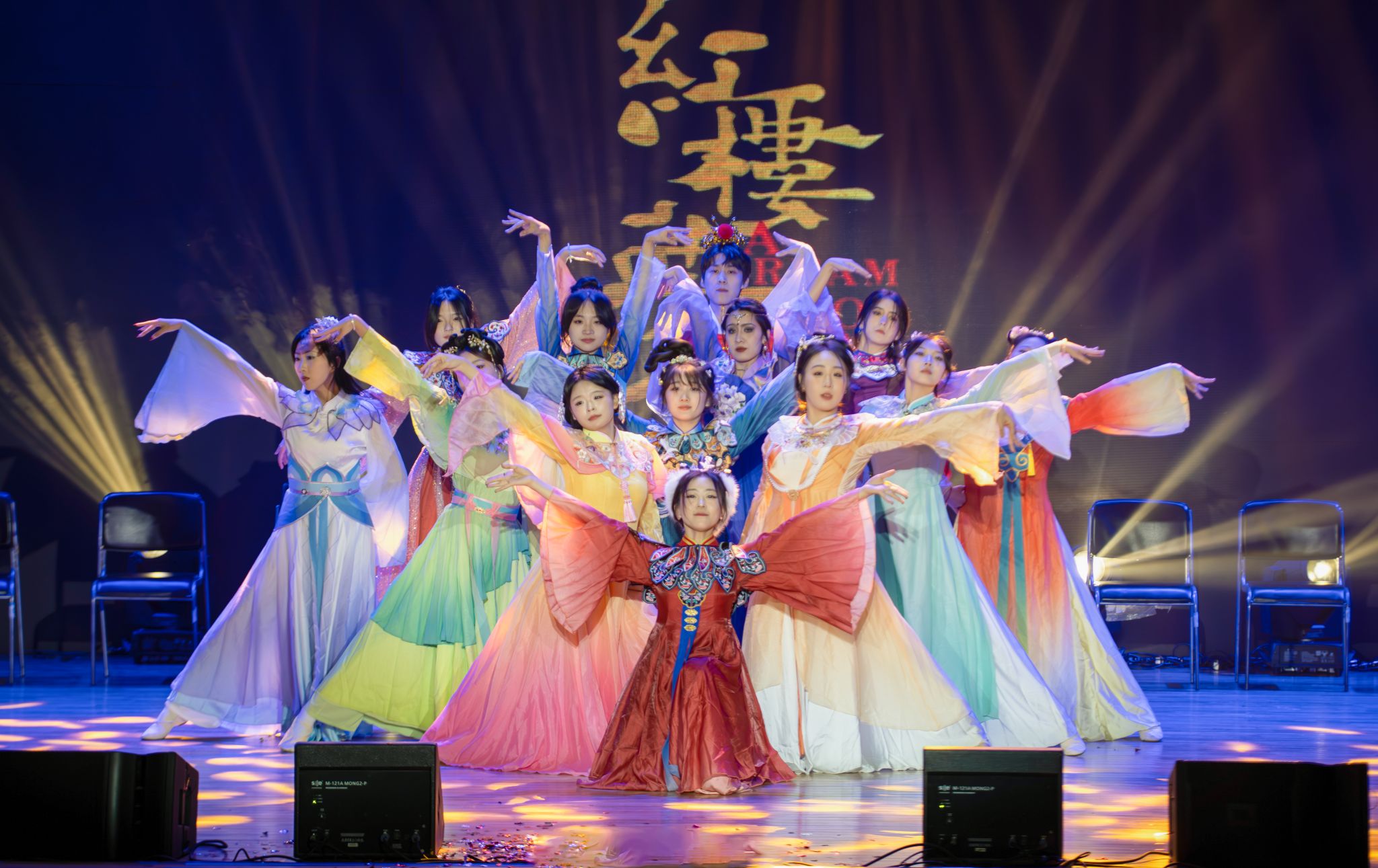 全场晚会分为起航、致远、筑梦三个篇章,节目精彩纷呈,涵盖了歌曲、舞蹈、话剧、相声、诗朗诵等多种形式,舞美灯光热情四射,充分展现了我院青年学子的朝气与活力。现代舞的每一个舞步都充满了生命力,每一个表情都传递着情感的共鸣;民族舞《红楼梦》在校级各类舞蹈比赛取得过优异成绩,舞蹈以优美的舞姿再现了文学经典的独特魅力;歌曲唱出了青年人的心声,更表达了师生对美好未来的向往;诗朗诵和话剧则注入了诸多思政元素,给人以启迪;相声、乐队等节目让整台晚会充满了欢声笑语。