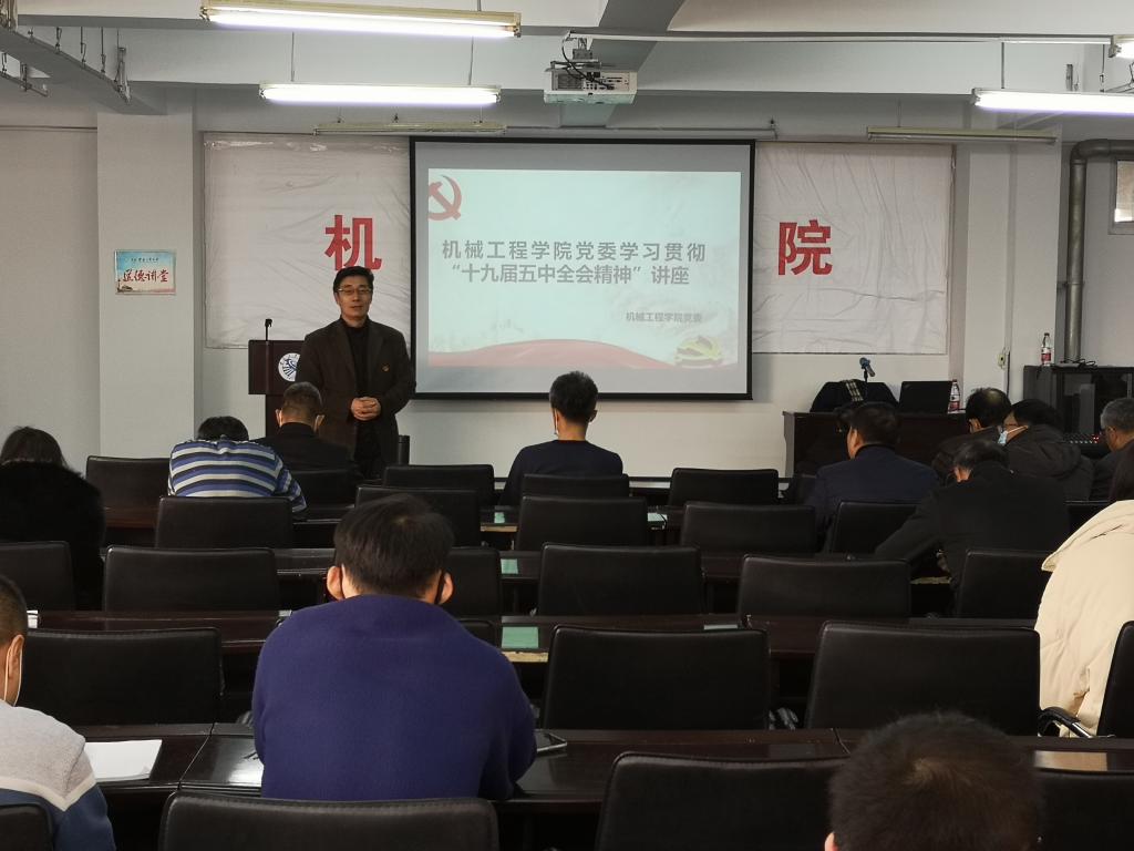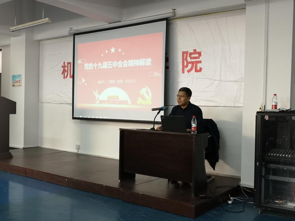 12月9日,机械工程学院党委邀请马克思主义学院丁春福教授在机械楼210会议室做了一场题为“党的十九届五中全会精神解读”的讲座。