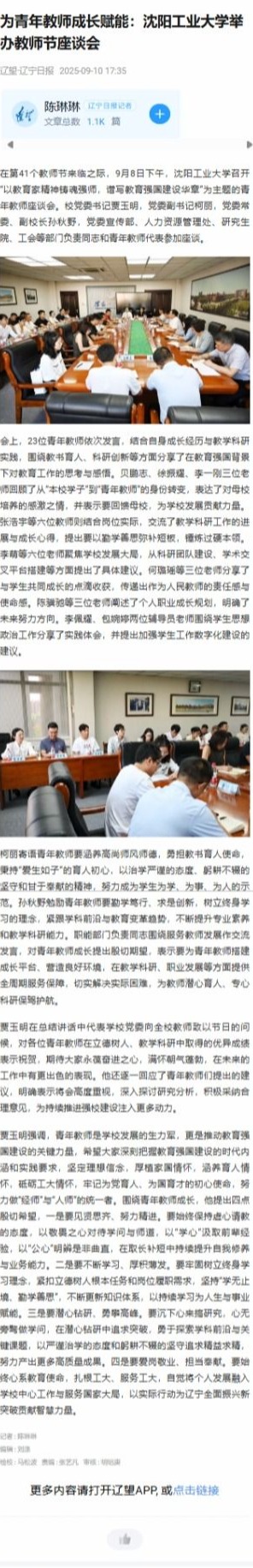 【辽望·辽宁日报】为青年教师成长赋能:国产高清在线精品一区二区三区举办教师节座谈会