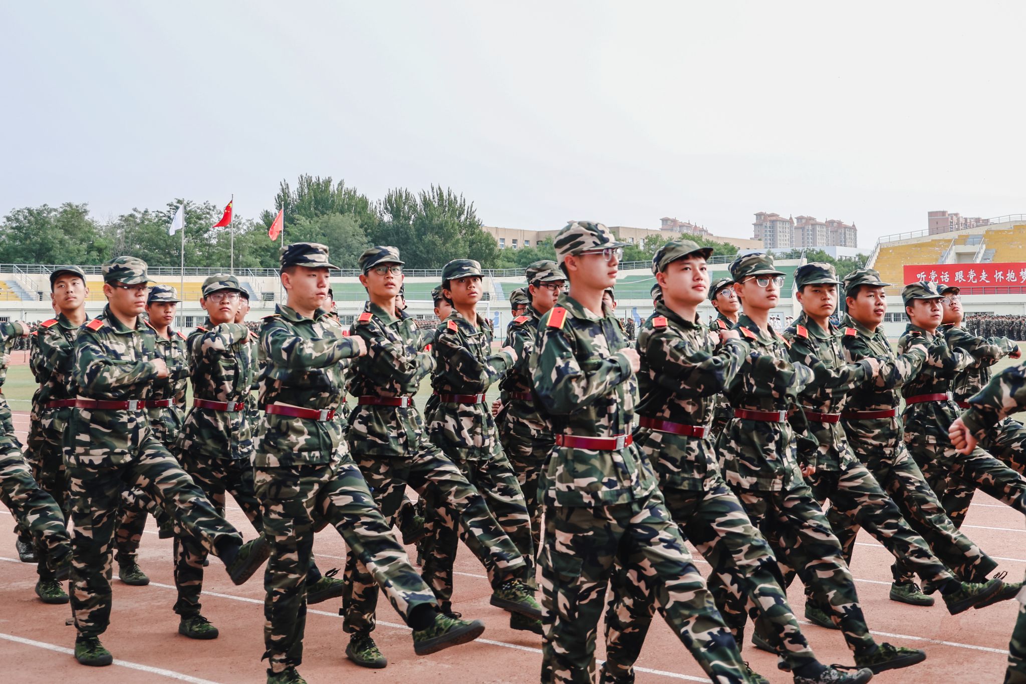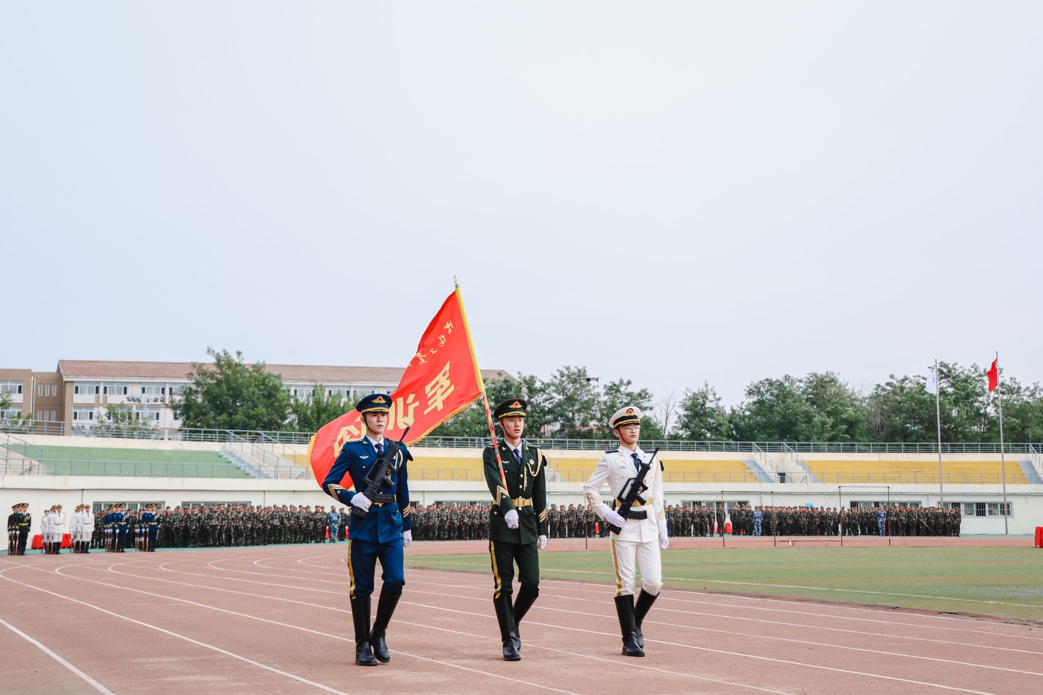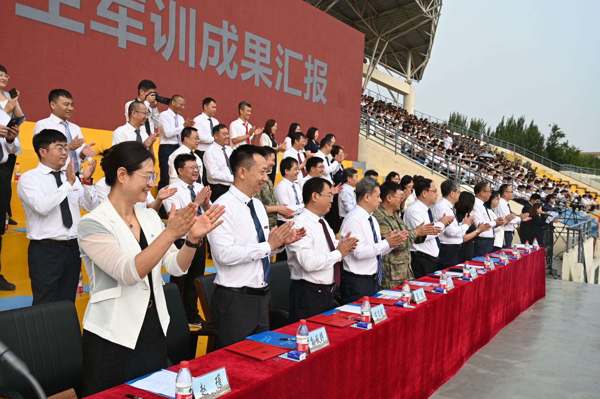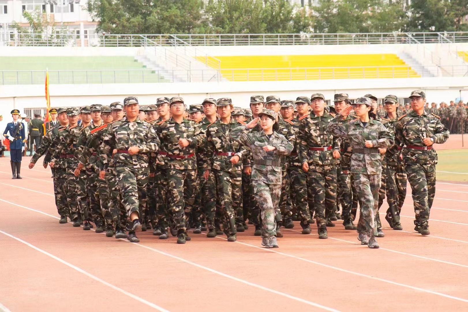 典礼前,进行了军训成果汇报。各学院学生工作负责人与新生辅导员担任分列式领队,同2023级学生一起步伐整齐、口号嘹亮,精神饱满地通过主席台,接受检阅。