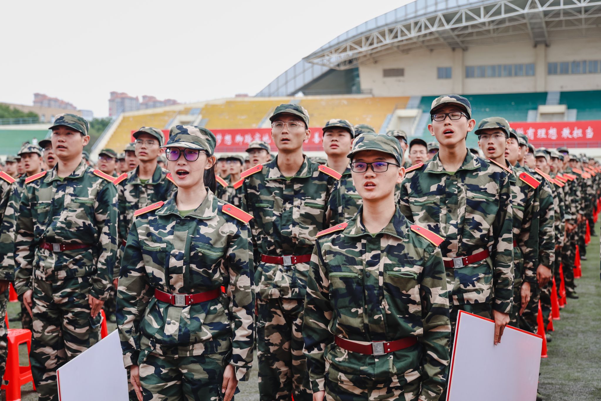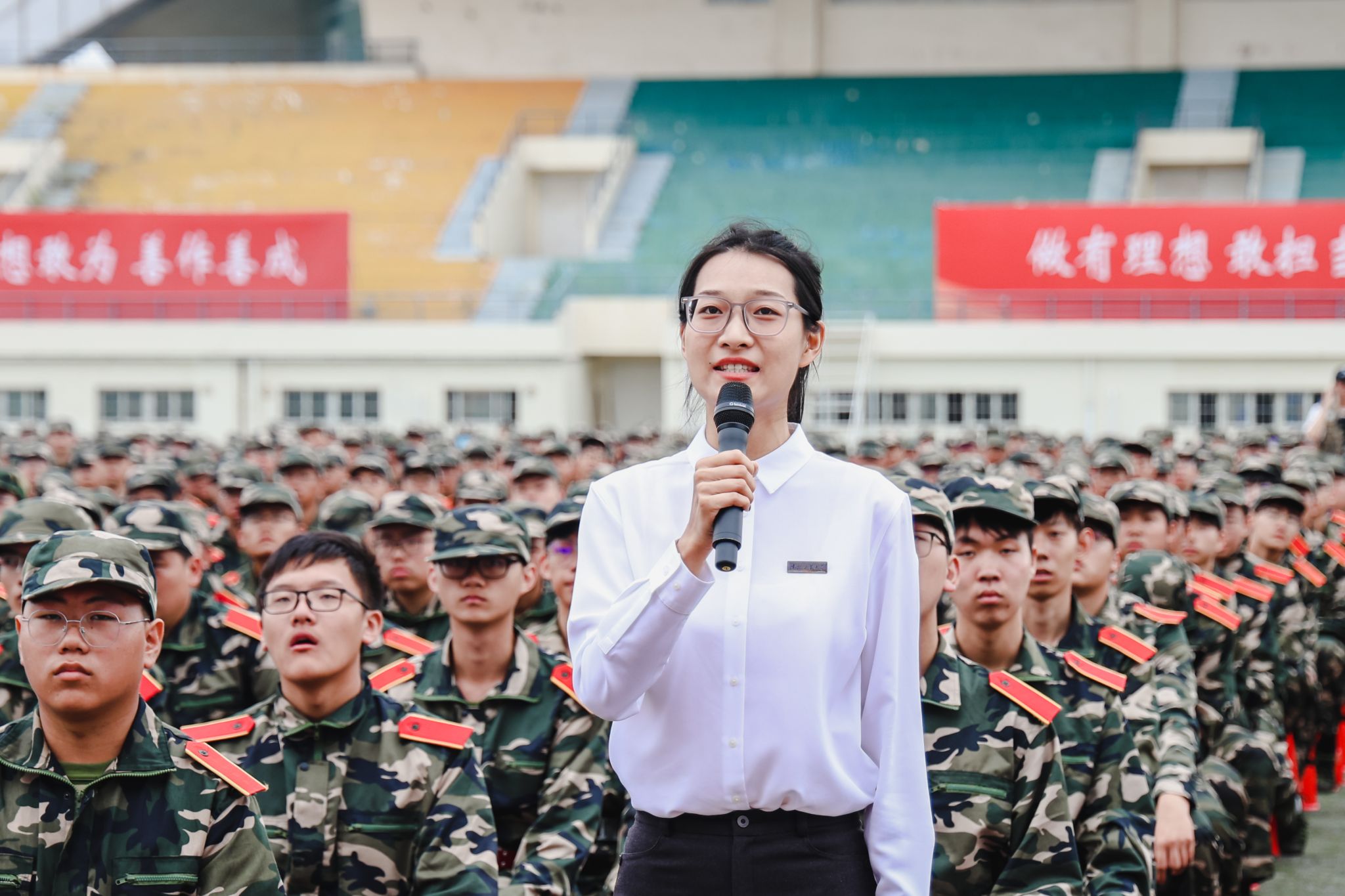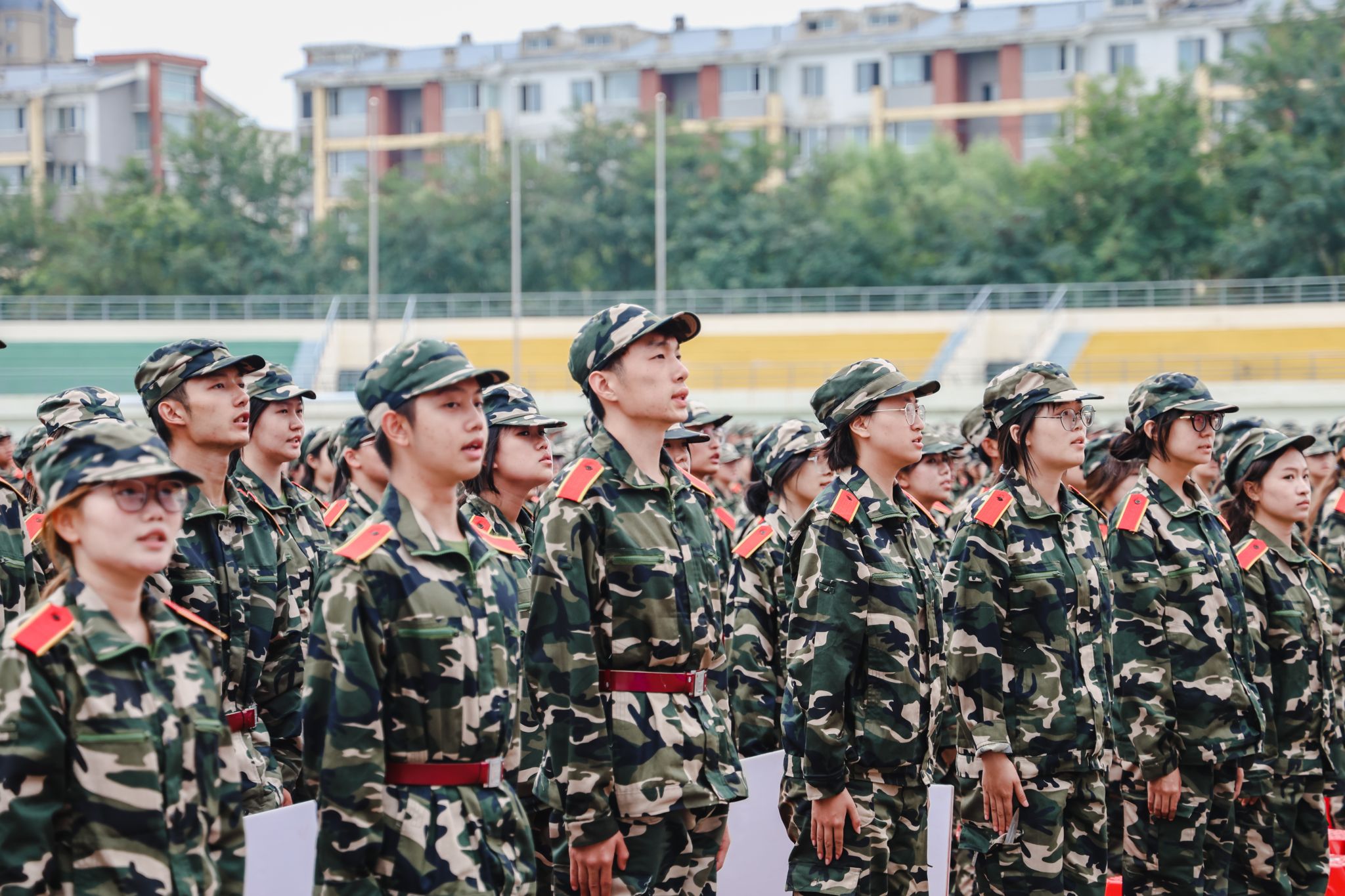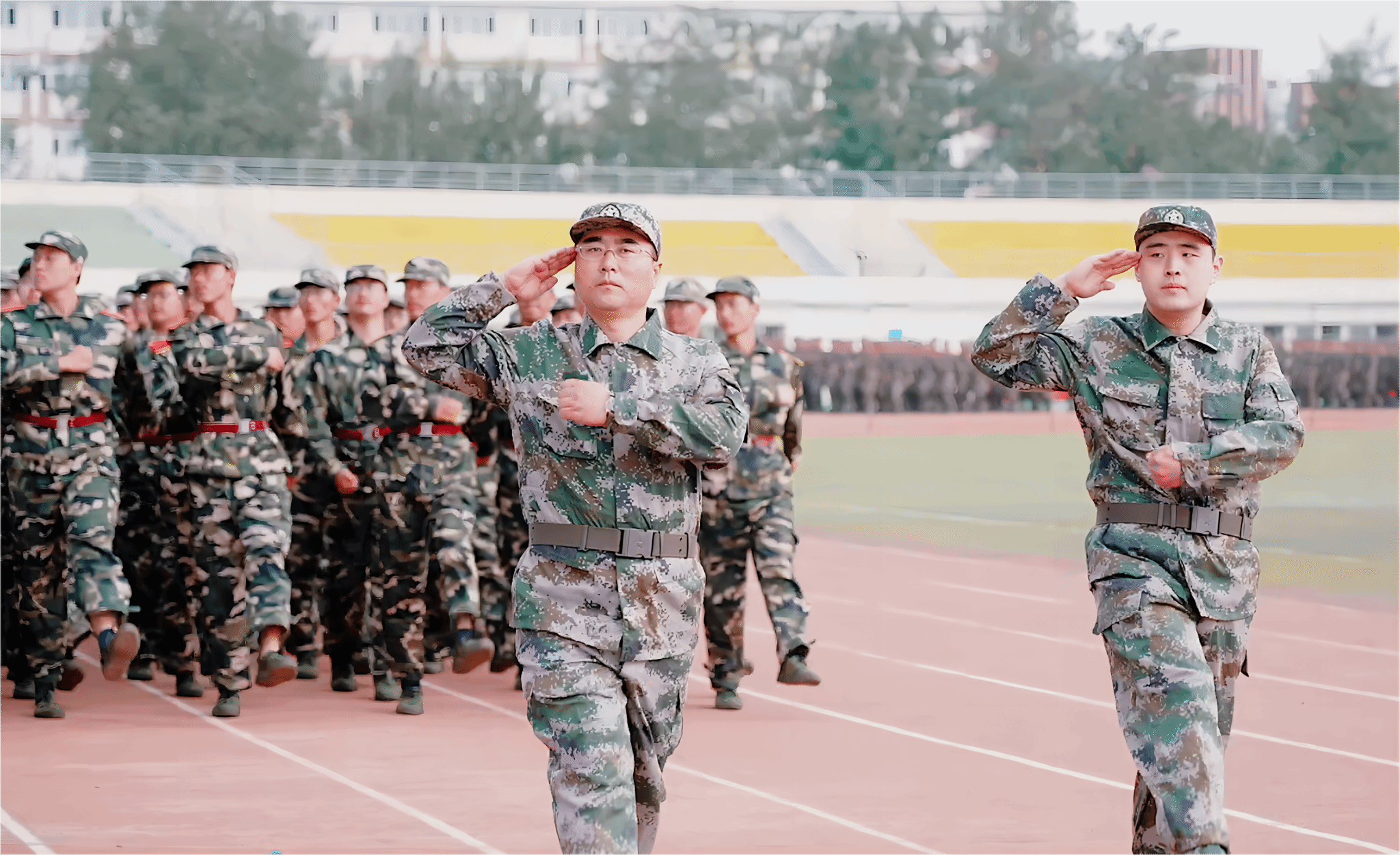典礼前,进行了军训成果汇报。各学院学生工作负责人与新生辅导员担任分列式领队,同2023级学生一起步伐整齐、口号嘹亮,精神饱满地通过主席台,接受检阅。